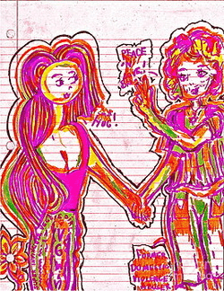 The artwork presented here reflects a raw, hand-drawn visual language rooted in immediacy, imagination, and social awareness. Created on lined notebook paper and layered with pen, marker, and vivid color overlays, these pieces feel personal, unfiltered, and direct.